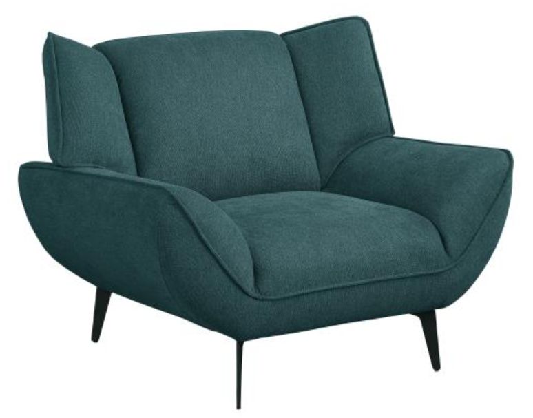 Teal fabric upholstery with flared arms, wing backs, and non-removable seat