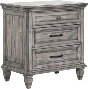 With a country flair and rustic elements, this charming traditional three-drawer nightstand offers classical design features such as crown molding, wood paneling, and a plank style design that gives your bedroom a farmhouse feel. A durable mahogany wood frame in a grey finish lends itself to your rustic styled bedroom with elegance and ease.Read More