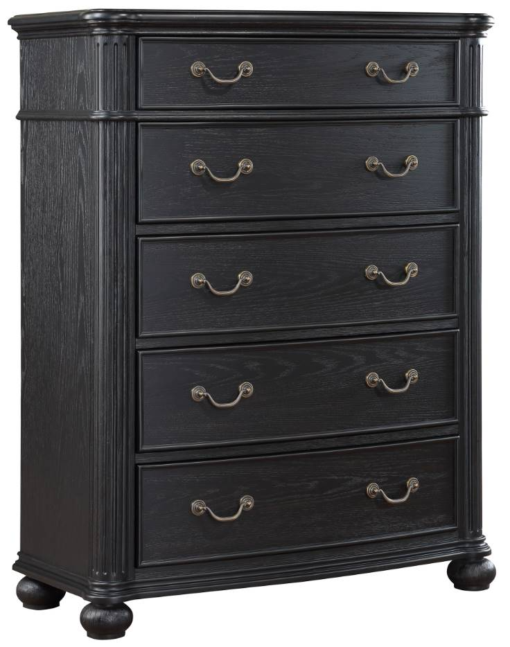 This five-drawer chest is a testament to refined bedroom storage, with its towering design and thoughtful features. The top drawer, felt-lined for protection, is an ideal space for keeping valuables and sensitive items. The classic dark finish and detailed hardware lend themselves to a design that's both functional and aesthetically pleasing.Read More