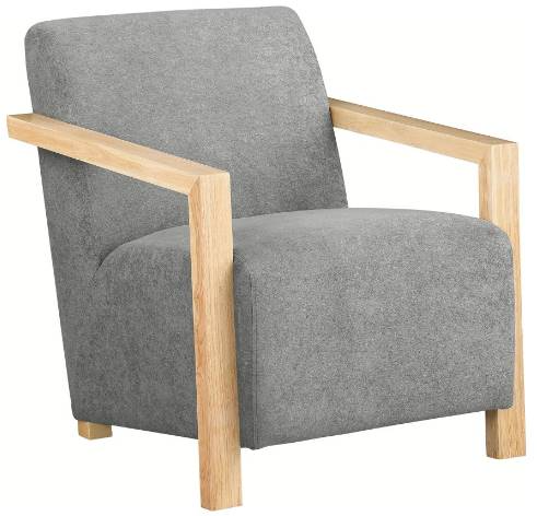 The chair boasts a smooth back and a wide seat with a waterfall edge, creating inviting presence and impressive comfort. It includes a pair of wooden armrests, each with an angular profile and straight, strong lines. Add this charming chair to an existing seating group or choose a pair to create a cozy complement.
