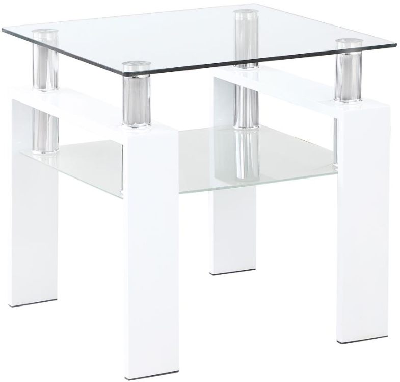 Add the combination of style and function with this eye-catching end table from the Dyer Collection. Shown in glass top and white finish. Make a bold statement by incorporating this stunning end table into your home.Read More