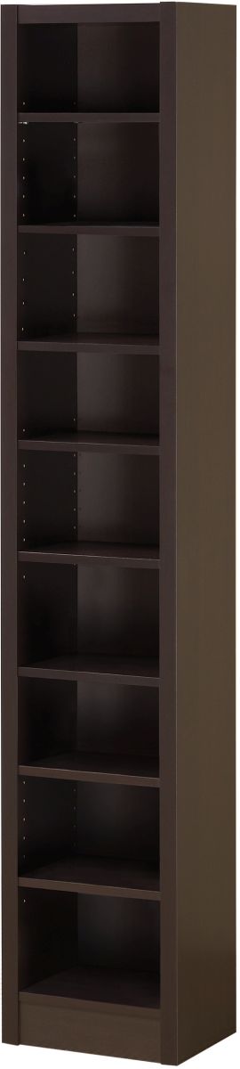 Tall and narrow, it accommodates a variety of books and belongings without taking up too much space. Complete with a rich finish of deep cappuccino, it lends effortless glamour to any room.