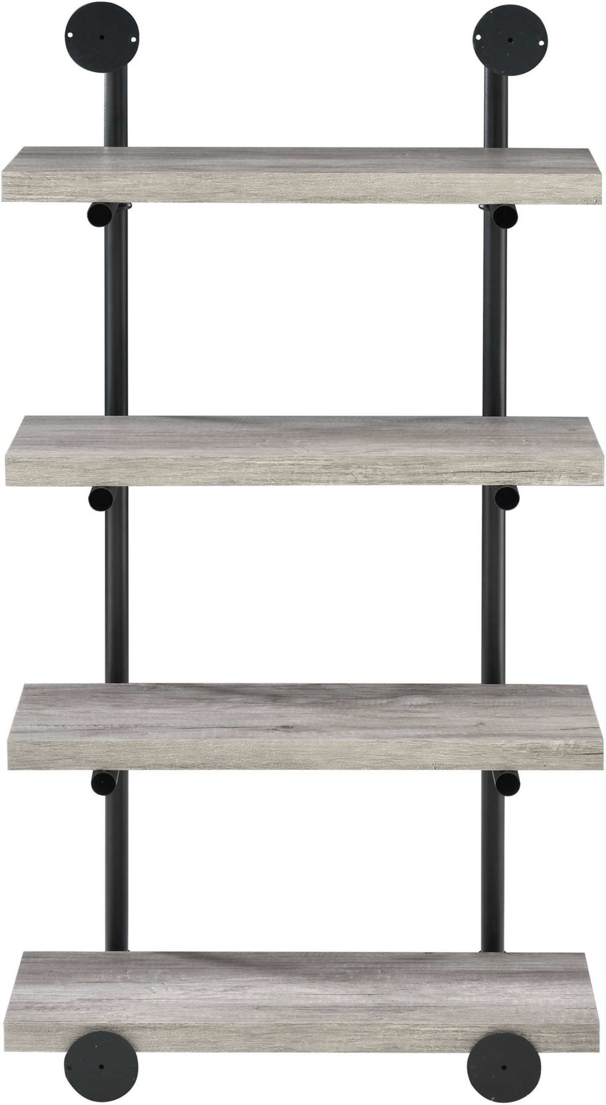 Industrial design can be elegant, as shown by this wall shelf. Plumbing pipe frame highlights the rugged utility that's the hallmark of the style. Wall hanging adds a unique element to the piece. Incorporates four (4) open shelves for ease of storage or display. Available in a variety of finishes and widths for your specific style and space needs.Read More