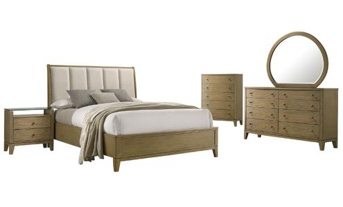 Transitional five-piece eastern king bedroom set