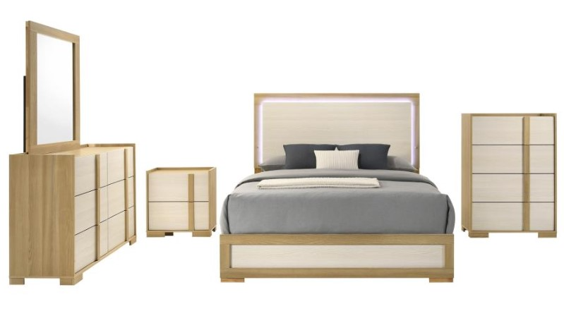 Whichever configuration you choose, this set offers a harmonious blend of style and functionality. The bed, available in both queen and eastern king sizes, is complemented by a matching nightstand, dresser, dresser mirror, and optional chest. Elevate your home decor with this cohesive and stylish set, designed to bring both beauty and practicality to your space.