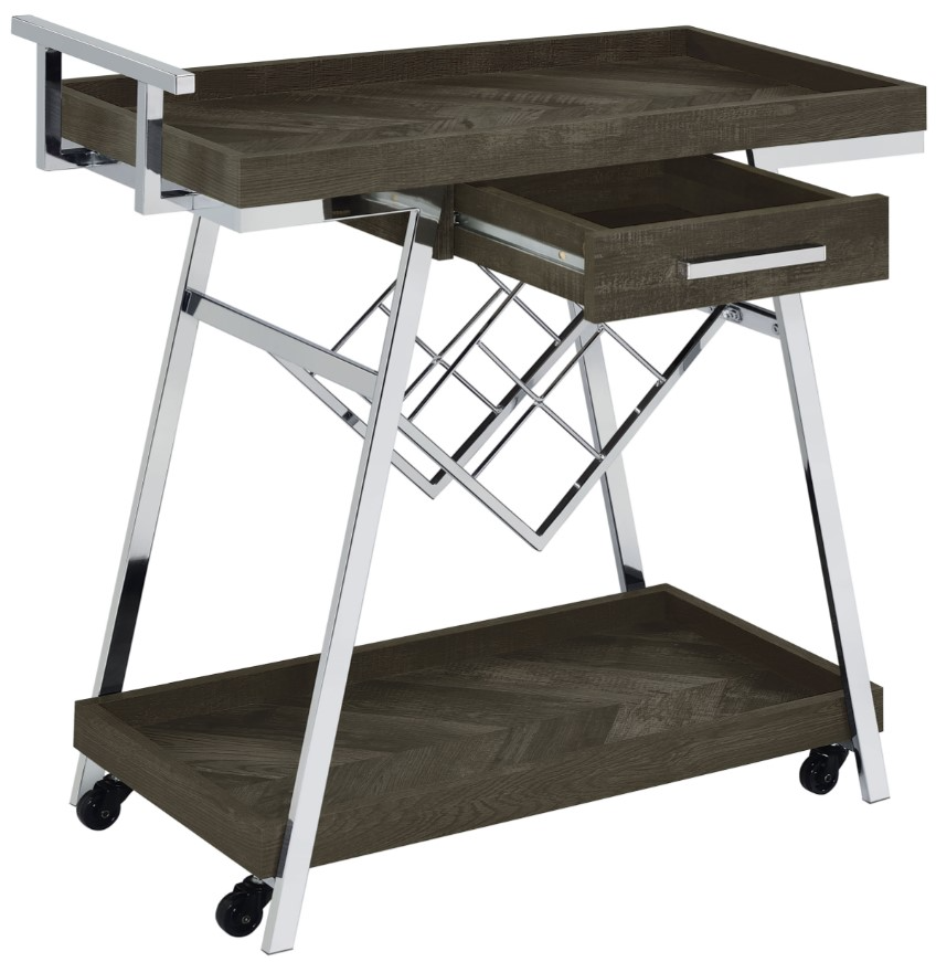 Grey bar cart adds a fresh look with plenty of functionality for social gatherings
