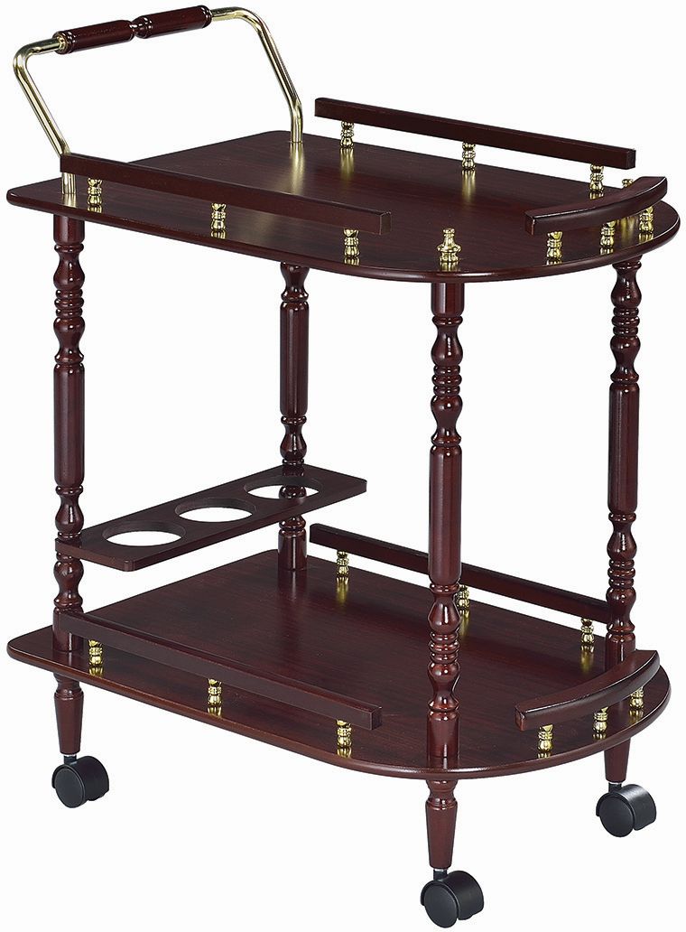 Merlot finish and brass accents call attention to the historical nature of this serving cart