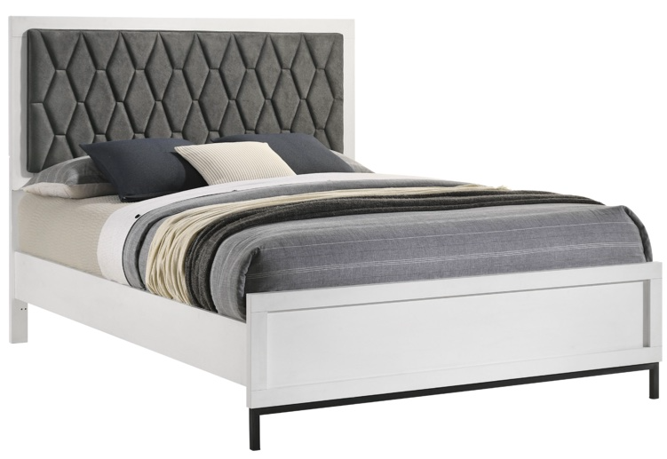 Bring geometric detail to your bedroom with the charming hexagon motif featured on this modern upholstered bed. Offering a contemporary look and feel, it creates a stylish focal point with its rich contrast of color and texture. The padded headboard offers excellent comfort and dark gray faux leather upholstery.Read More