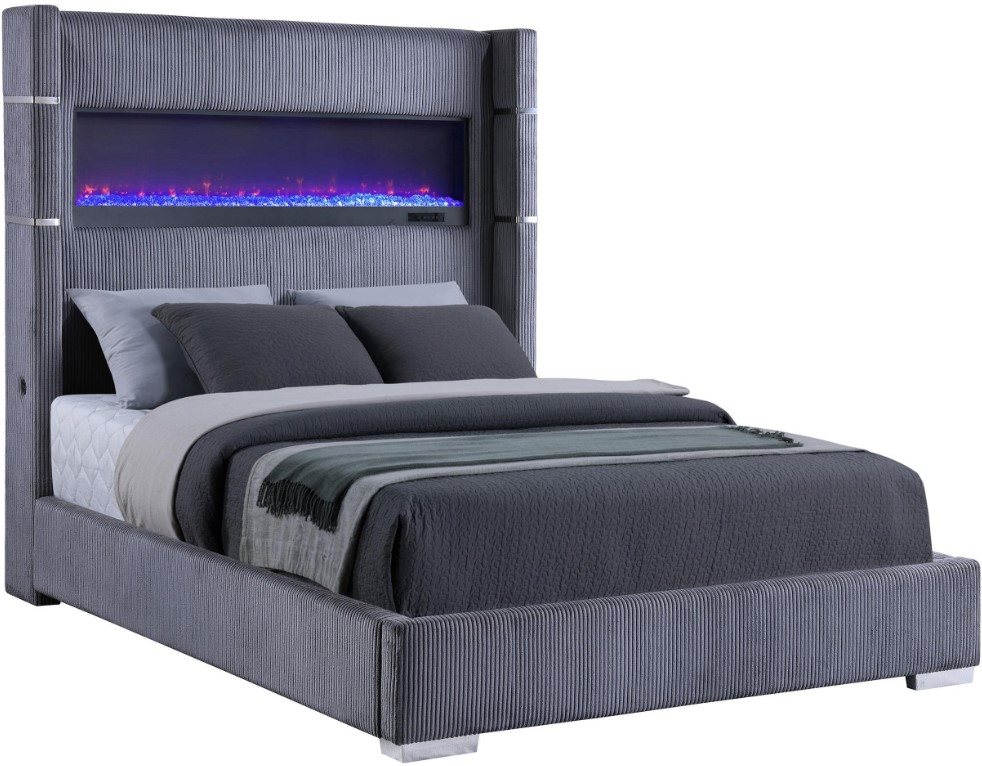 Transform any bedroom into a captivating sanctuary with this show-stopping bed, designed to draw attention and invite comfort. Available in plush corduroy upholstery, this bed effortlessly blends soft texture with modern sophistication. The integrated flame box offers a mesmerizing visual with 16 adjustable color options, all controlled via a convenient remote.Read More