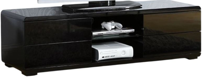 Finished in white or black high gloss lacquer, this modern TV console has room for the largest TV, full extension drawers for storage and open shelving for easy access to media components.Read More
