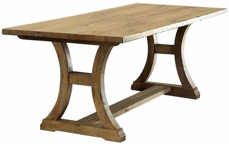 Dine in rustic elegance with this gorgeous antique-inspired collection. The weathered finish of the entire set draws attention to the sturdy solid wood framework while providing the necessary support for a worry-free dinner setting. Curved table legs create a unique visual and come reinforced with a center floor beam.