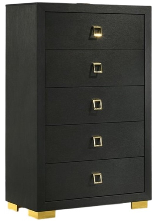 The Furniture of America® Latimer Black Chest features a sleek, modern look with ample storage space. Crafted with durability in mind, it offers four spacious drawers for organizing clothing or essentials. Its rich black finish complements various interiors, making it a versatile addition to any room.Read More