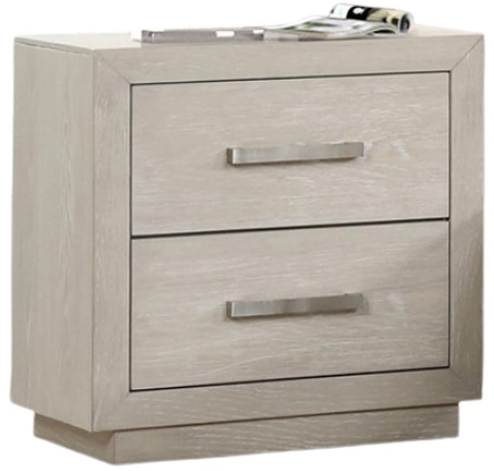 The Wellingborough Nightstand is a transitional-style piece designed to complement modern bedroom decors. Crafted from solid acacia, engineered wood, and oak veneer, it features a light gray finish that adds a touch of elegance to any space.Read More
