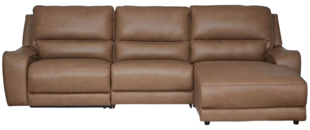 Live and lounge luxuriously. This power reclining sectional sofa chaise brings an ultra-stylish flair to your home’s central hub. Its seating area is wrapped in top grain leather in a rich caramel color, giving you a trend-right look made all the better with high-quality materials.Read More